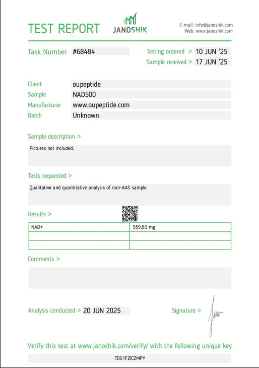Transparency Note: On the COA, the client is the manufacturer listed as oupeptide.com.