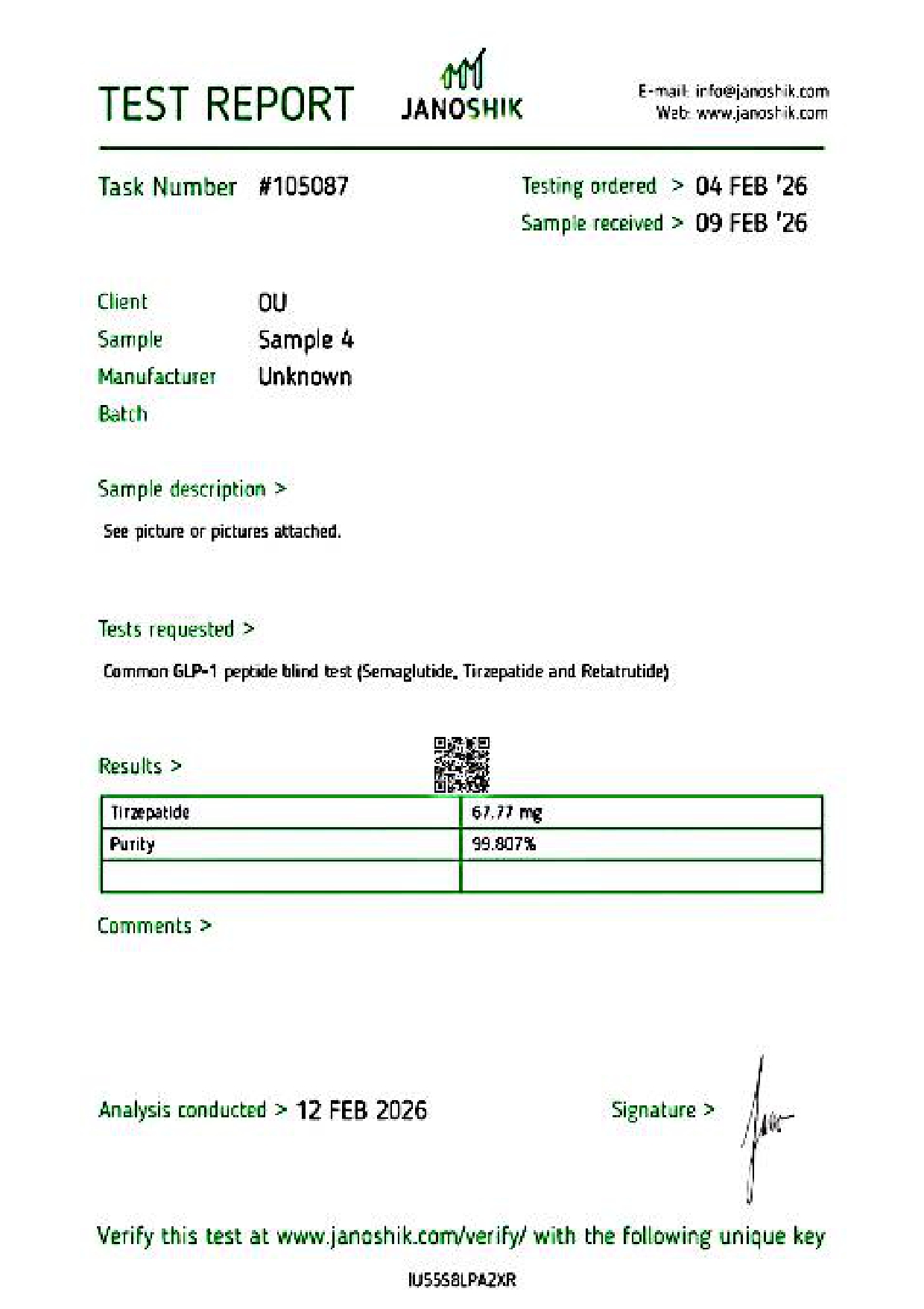 Transparency Note: On the COA, the client is the manufacturer listed as oupeptide.com.